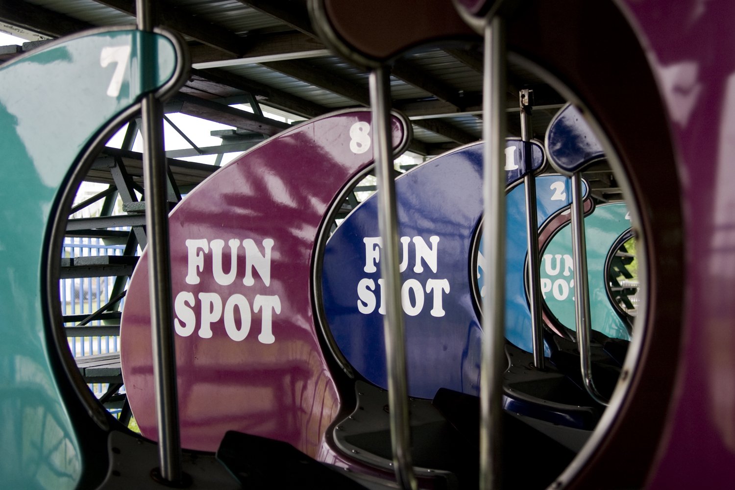 Fun Spot had originally opened in 1956—one of just a handful of amusement parks in Indiana. The family-owned place thrived in a time when local, small parks were still a staple of American summers in small towns (such as this one) before the likes of Cedar Point, Kings Island and Six Flags were at their peak. In the wake of the proliferation of corporate theme parks, many local amusement parks met their demise and were abandoned (you may recall a similar story in the original QC/D post about Americana/LeSourdsville Lake Amusement Park back in 2007).