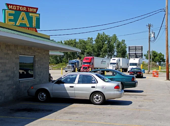 The Motor Inn truck stop was found next. I didn't have time to stop in and the aftertaste of processed Roast Beef killed any appetite I had for trucker food, but the neon sign that read "Eat" was reminiscent of the stereotypical "Eat at Joe's" signs you always see in movies and television.