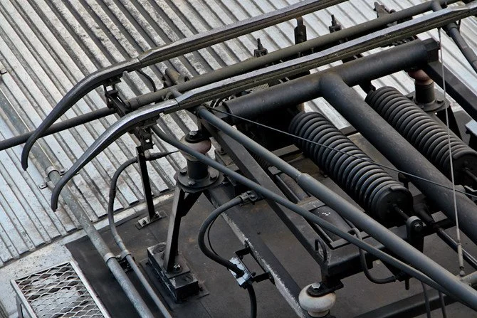 Pantograph atop a train at the Van Buren Station.