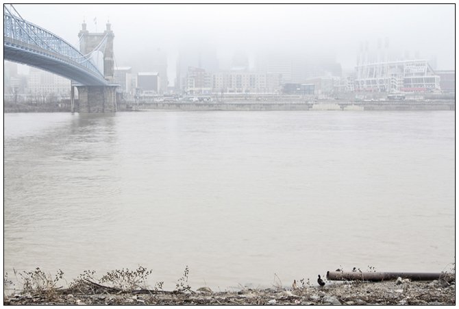 On a typical midwestern winter day, cloudy and gray, the fog rolled over the Cincinnati Skyline. I stood on the opposing Covington waterfront and made the first frame of the project - happy with how things have started.