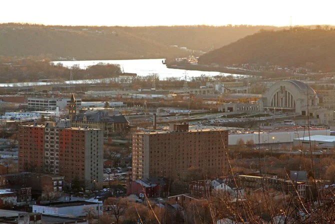 In the East, you can see over to Mt. Adams. Downtown in straight ahead and to your right, the West End, Ohio River bend and Northern Kentucky.