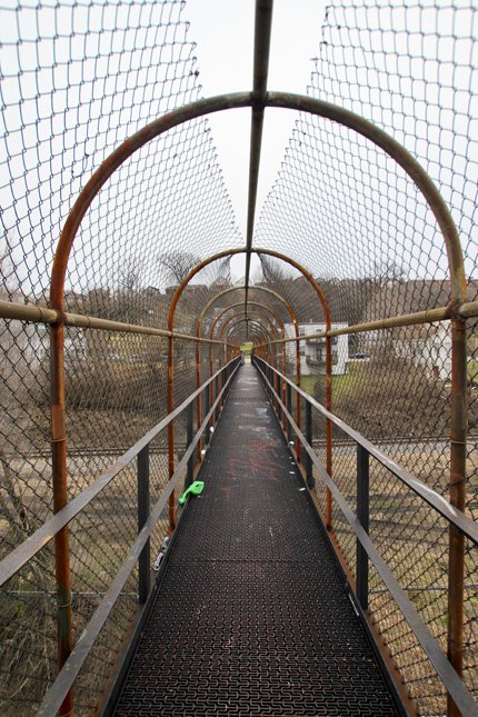 The day started out with nice weather. This whole winter has been relatively mild with very little snow. In true Midwestern fashion, the weather soon turned overcast and bitterly cold. Ryan and I met up in search of an angle that we had seen in a Cincinnati Magazine from 1988. While looking, we came across a bridge that crosses the railroad tracks in Newport.