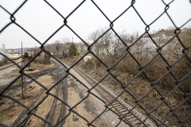 The tracks below service the Amtrak "Cardinal" line between Maysville, KY and Cincinnati's Union Terminal when it crawls into the area late at night.