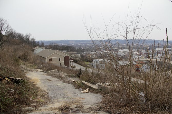 Much like Cincinnati, these hillside steps seen above were overgrown and closed. Looking down the hill, a crumbling "Closed Steps" sign could be found in the brush.