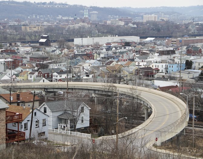 Ryan Texas Ranger came along for this one. The day had gone from bright sun to overcast and cold within the matter of minutes that it took for me to get from my apartment to downtown. Using the old magazine we had, we lined up where the cover shot had come from. Although I never really recognized it, Newport has some incredible hills just as Cincinnati does.