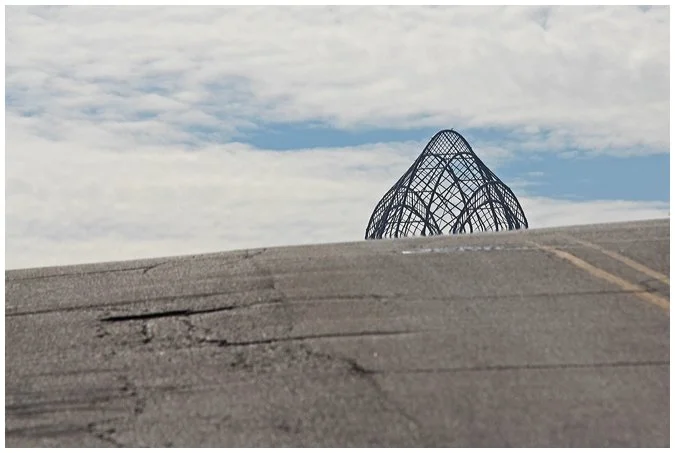 When the Great American Tower at Queen City Square was completed in 2010, it became the tallest skyscraper in Cincinnati. Its position on the East side of downtown makes it a prominent landmark from all around, but particularly from Mt. Adams. That day, it was the first thing that came into view which is why I chose to abstract the skyline's tallest point, a minimal view of the usual city vantage. The road looks more like one in the desert, the "tiara" more like a birrdcage.