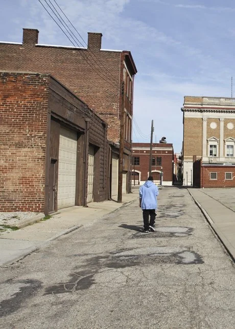 I'm standing at the northern edge of a surface parking lot near Richmond St. It's late in the afternoon, almost evening time at the end of the weekend. I've been out working on frames for #224Cincy all day. I've been struggling with this shot. I can see how I want it to be - the rooftops and how they flow from ornate to worn down all with the Carew Tower, a key symbol of the Cincinnati Skyline, to the left. I try various lenses, finally my 28-70 Sigma allows me to line up the shot how I envisioned it. I light up a cigarette and gaze around. Since it's not a business day, the parking lot is empty. Aside from a few cars on Ninth and church bells in the distance, it's eerily quiet downtown. As I double check the shot, the urban "silence" is broken by a man passing by. Headphones in his ear, he staggers by singing: