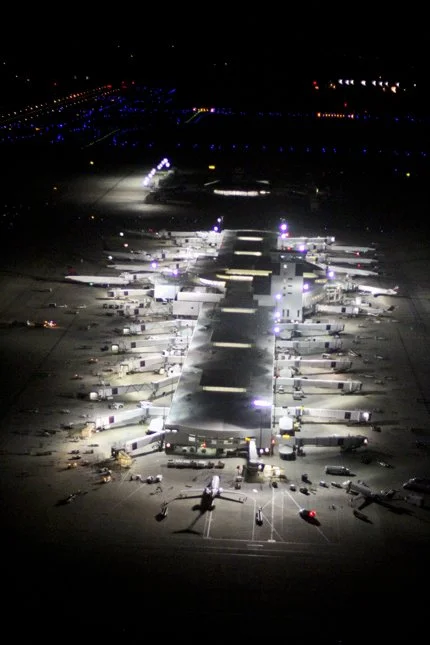The other night I had the opportunity to go flying with my friend JaMichael. He's an Aviation Technology Major at the University of Cincinnati and he's been flying solo for two years. He was kind enough to take up my girlfriend, our friend Emmerz and myself. I've gone flying with him before and he always orchestrates wonderful photo ops, but this was the first time going at night. It's hard as hell to shoot at night from an airplane, even with a DSLR that has high ISO tolerances. So I tried something different - pushing the camera up against the window, keeping it stable with the wing and dragging the shutter to abstract the view below us.