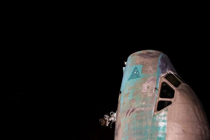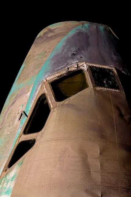 It's not every day you see an abandoned airplane on the side of the road sticking up into the sky like some long forgotten space capsule.