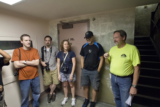 The tour continues through more hallways and stairs. Steve gives instructions for us to watch our heads and be ready to scale the catwalks of the building's "high steel" section.