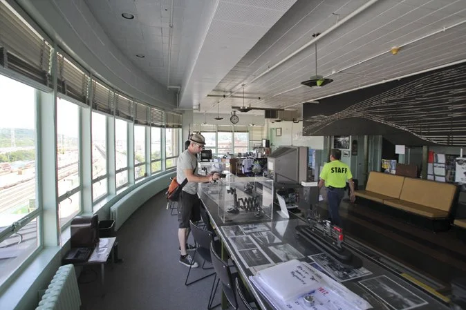 Steve leads us to Tower A, home of the Cincinnati Railroad Club. This part of the building is the original control tower for the passenger train rail yard. It's filled with historical items, the yard's original switchboard and a group of friendly volunteers. The tower is open to the public and completely free.