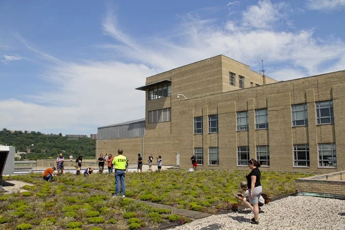 On the South end, we get to check out the building's "green roof." The green roof provides insulation to the building and is a key component in reducing heating and cooling costs, all by embracing natural "technology."