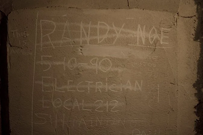 Names of contractors from the Museum Center's renovation inscribed on the wall.