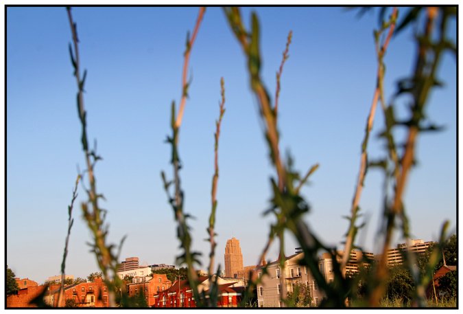 On the city's west side, weeds and grass frame the skyline ahead, remnants of a vacant lot surrounded by the neighborhood. The lot has yet to be developed and is a stark contrast of urban wilderness amongst the dense Italianate row houses. The nearby laughter of children, voices of residents and sound of firecrackers saved from the Fourth of July echoe the activity of a neighborhood once decimated by a highway - rising again.