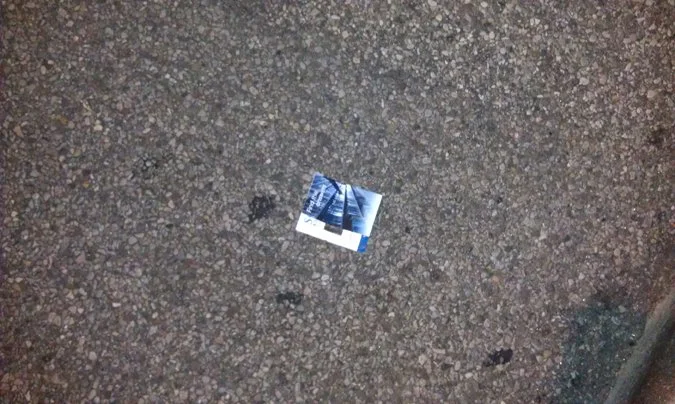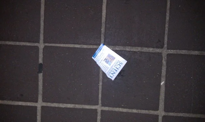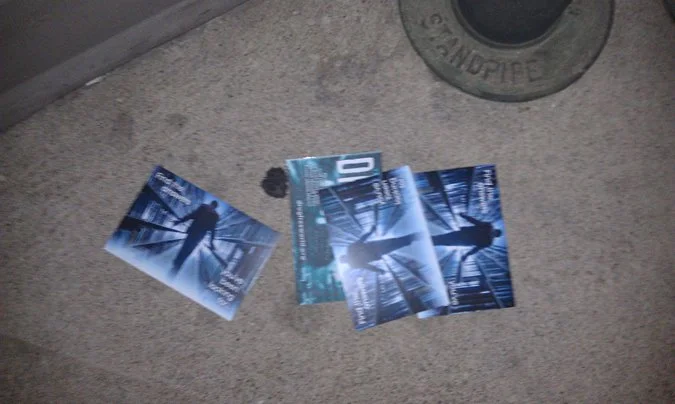 We enjoyed the show and went down to The Holy Grail for some drinks afterwards. Again, my walk was littered with invitations to come visit the Church of Scientology. We have our drinks, the bar closes and I say goodbye to my friends. At this point, I'm walking from the corner of Main and 2nd to the corner of Main and 4th where my car is parked in a garage. I couldn't believe how many of these damn flyers were in the streets and on the sidewalk. Pardon the cell phone photographs, but here's most of the ones I saw on my two block walk. And Church of Scientology if you're reading this and want them back - they're in a trash can by the Walgreens at 4th and Main.