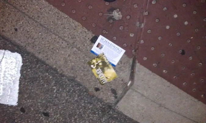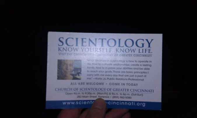 I get it, Scientology isn't the only offender for handing out stupid flyers that no one really reads and ends up just throwing on the ground like some losing instant poker ticket at a church festival. I can't begin to tell you how many times some up-and-coming hip hop producer has offered me his demo C.D. in a gift bag with rolling papers when walking out of Reds games. I also realize that the people passing this shit out aren't exactly the one's littering, but the morons in flip flops and backwards hats who take the flyers, crack a joke to their friends and then throw it on the ground. But why empower people to be stupid by giving them useless shit to throw on the ground in the first place? The Scientologist folk seem to be out doing this a lot though so, to them I say: