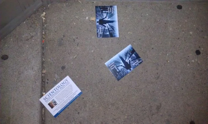 Church of Scientology, I do not care if your religion is accused of being a financial scam, has a history of separating families from their loved ones, or is the reason why Tom Cruise's wives keep leaving him. Freedom of Religion in this country, I get it - do what you want, but can you at least be courteous to not pollute the city streets with your propaganda? I'd really appreciate it.