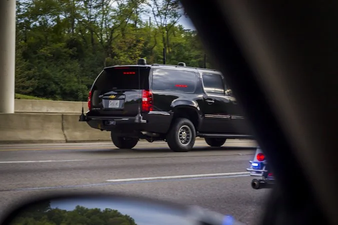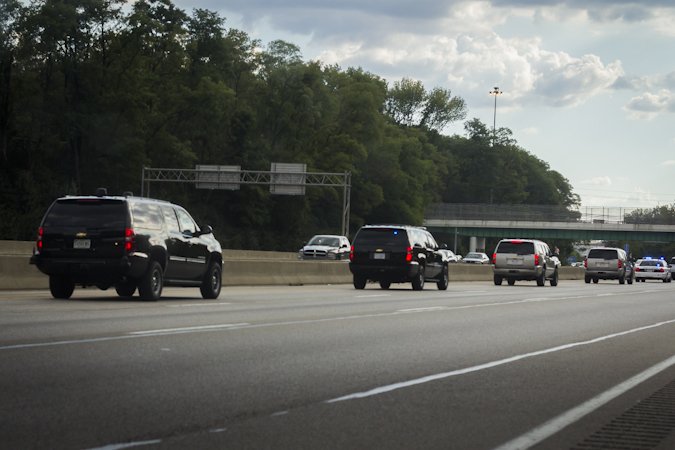 Hearing sirens in the distance, I switched the radio over to AM expecting to be informed of some grisly accident or road work that was slowing traffic and delaying me from getting home. However, as the cars pulled over there was nothing. No wrecked cars, no orange barrels - just the officer on his motorcycle. Soon more State Troopers arrived, using their bullhorns to tell everyone the delay wouldn't be long. I rolled down my window and made eye contact with one of the troopers.