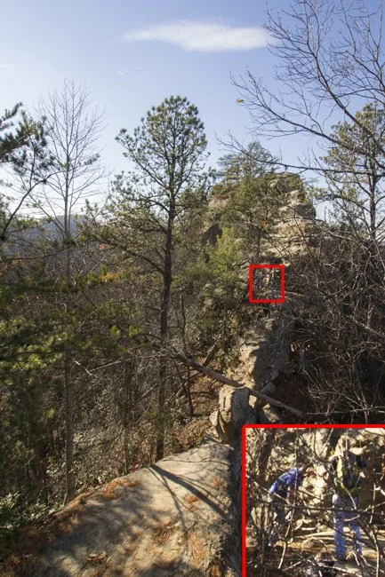 The pictures Sam had shown us were of a cliff called "Half-moon rock." He said there would be "a little climbing involved," but that it wasn't too bad.