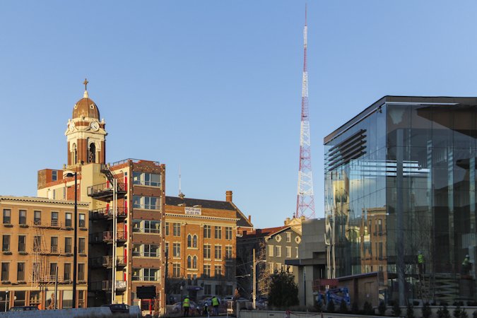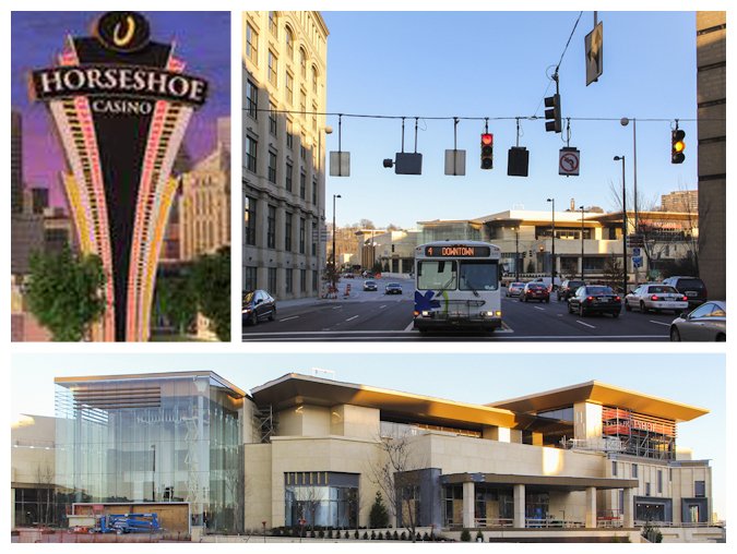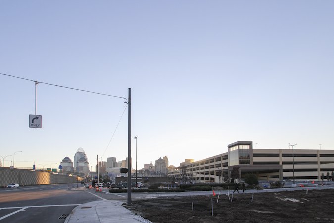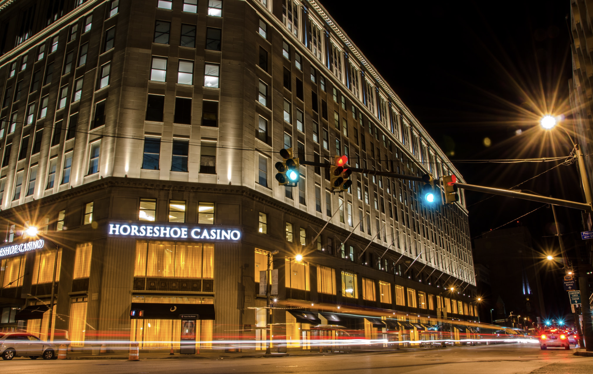 Cincinnati's Horseshoe Casino as seen while looking down Central Parkway.