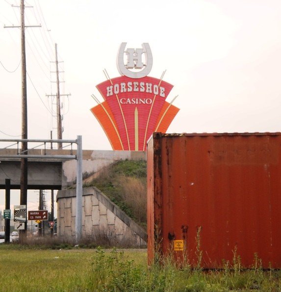 Not only does it not fit with the Cincinnati Skyline and surrounding area, but it doesn't even fit in with the casino itself. It looks like something reserved for a suburban casino in the fields of Indiana. Speaking of which, this is how the 110ft. variety of the sign looks like in Hammond, Indiana outside of Chicago: