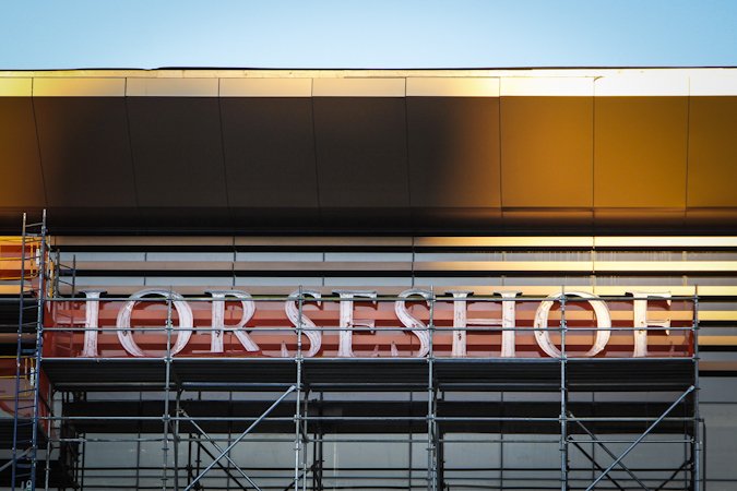 The Cincinnati casino brought forward the idea of erecting a large sign. Lit with LED's, the sign would be evoking the bright neon lights and colors of casino signs typically seen in Las Vegas, the gambling capital of the nation. It would be of similar design to the other Horseshoe casinos in the country, with the exception of Cleveland.