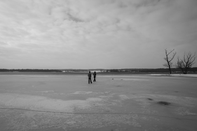 Cody Jay Mode and Paule B on the frozen surface of Lake Chippewa.