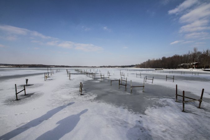 We stood on the ice in the middle of the dock and on the frozen beach looking for a way in.
