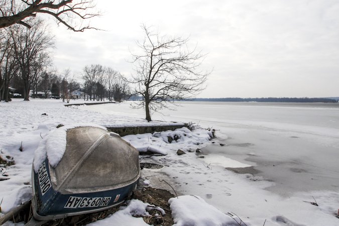 Eventually we arrived in Chippewa Lake, Ohio, a cute little lake side town with older bungalows situated in neighborhoods bordering the frozen water. The weather and wind were respectively colder and harsher than what we were living in further south. However, we thought the frozen lake would make for an ally in our quest to see the remains of the abandoned Chippewa Lake Amusement Park: