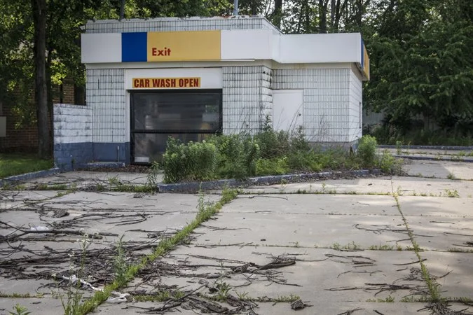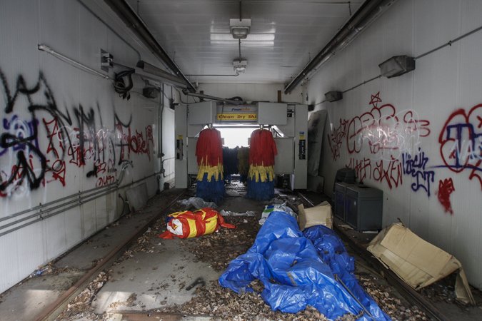 When abandoned, they rapidly deteriorate, such as this one - now a "shell" of its former life where the car wash has become a canvas for local wannabe "hood rats."