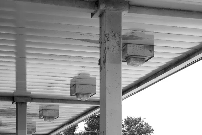 Since the automobile rose to dominate the American transportation spectrum, filling stations have come ro reinvent themselves through the years. Gone are the days of classic "petroliana" with clean cut employees pumping the gas to mega-stations with nearly every kind of convenience in mind. From car washes to groceries to premium fuel blends, gas stations have reinvented themselves to become one stop shops. Their wide parking lots are typically dominated by large roofs with fluorescent lights and they're a dime a dozen in the suburban landscape.