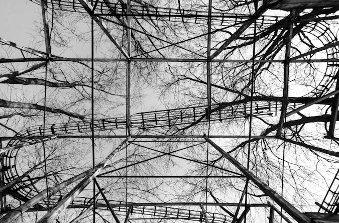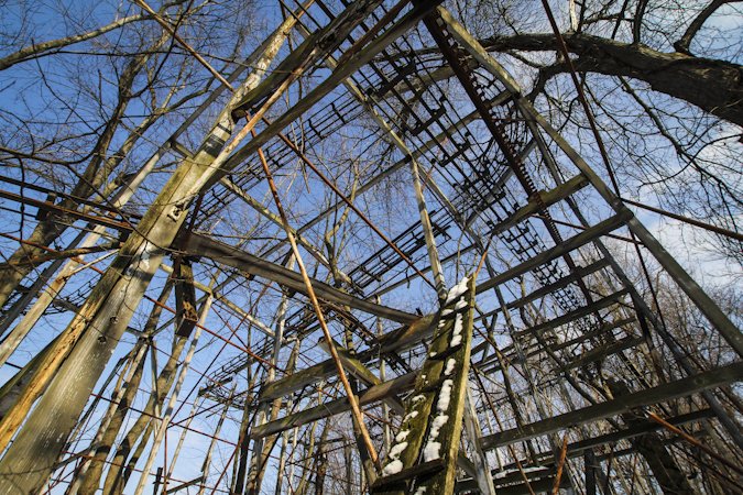 Through the rusted remains of the ferris wheel, a tree grows in Chippewa: