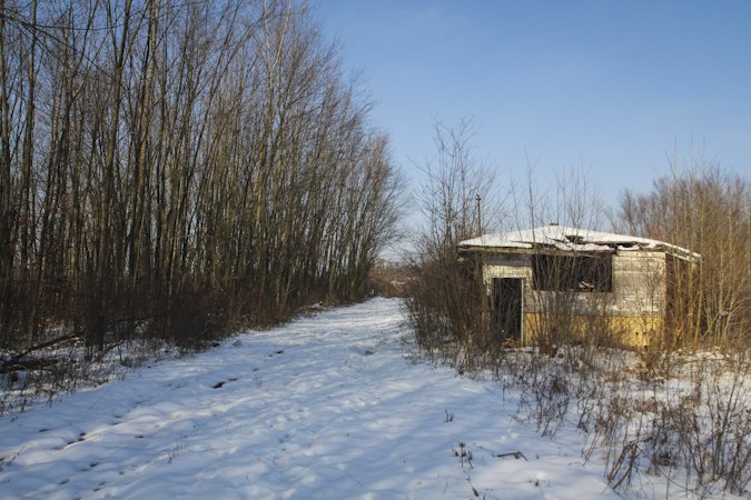 We found our way to a wide open area. It was hard to imagine that we were in an abandoned amusement park. Between the arsons, vandalism, deterioration, foliage and partial demolition - there's not a whole lot left of old Chippewa. Not to mention, we were all used to sweating our assess off at an amusement park during the summer, not freezing in one during the winter.