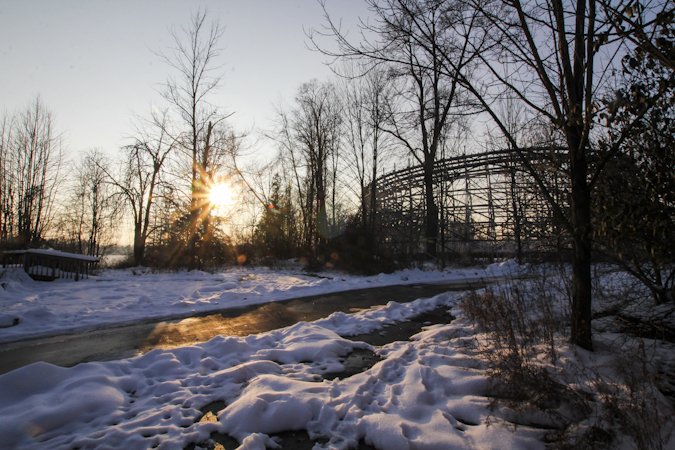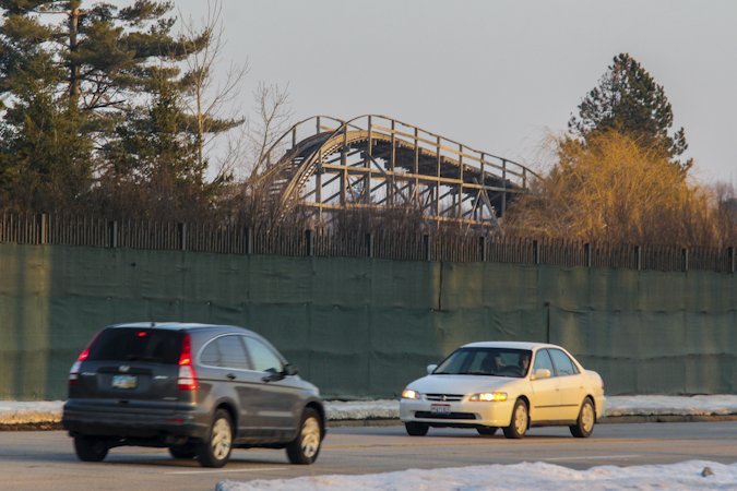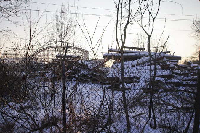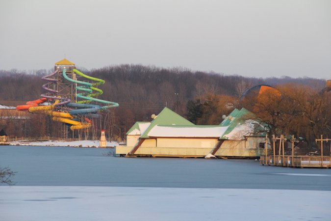 The reason I'm writing about Geauga Lake is because I was there recently, at least around it. During our trip through Northeast Ohio to explore the also abandoned Chippewa Lake Amusement Park, we swung up to Aurora just to see if anything was left of Geauga. Since the other half of the park is still active, demolition is ongoing and the thought of being out in the cold anymore wasn't appealing. We opted to just drive around the publicly accessible perimeter of the park and take a look, not venturing any closer.