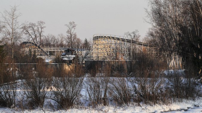 The remains of the "Raging Wolf Bobs" roller coaster.