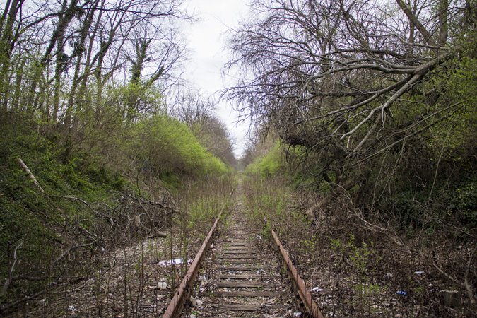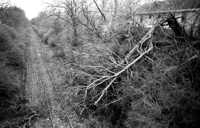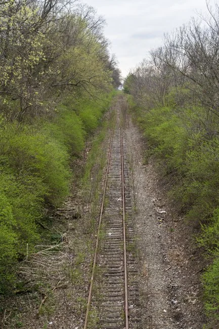 These tracks haven't seen a train since 2009, when Norfolk-Southern cut off service. Since then, the industrial corridor has been sitting quietly, slowly being reclaimed by the nature that buffers it from the backyards and businesses along its path.