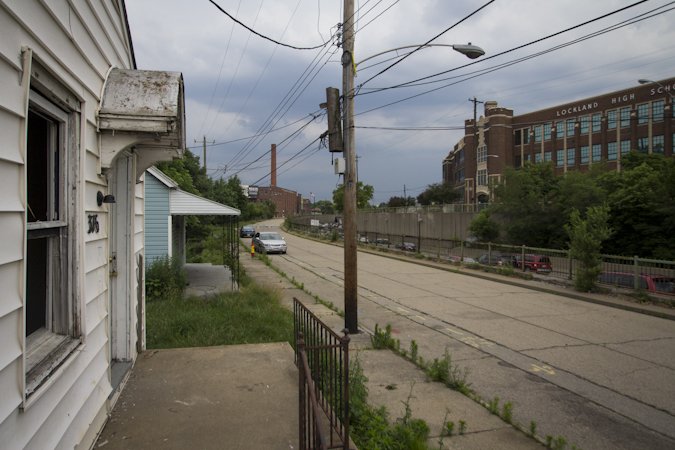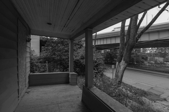 From the porch of a soon to be demolished residence. The neighboring highway can be seen in the upper right.