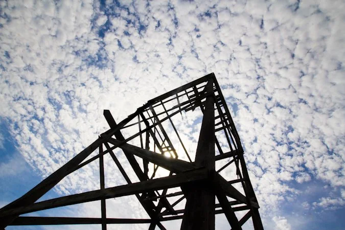 Our GPS directed us off the highway, into the country and onto a dirt road where we came upon the memorial and the rotting wooden structure next to it. The memorial isn't a "Russian Bomber" memorial so much as it is a memorial to those who once looked for them. In the early 1950's, the United States government established the "Ground Observation Corps." The GOC was created to help the military track any enemy craft that may have penetrated American airspace in the absence of a nationwide radar system. By 1952, the program was rolled into "Operation Skywatch."