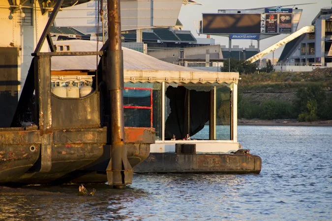 By 2005, the city still hadn't found a buyer for the complex. After flood debris struck the barges and repairs were estimated $1.4 Million, the city closed it down. The buildings were razed and the barges sold as scrap metal. A floating entertainment complex that had been built for nearly $15 Million ended up becoming scrap metal valued at $48,500.