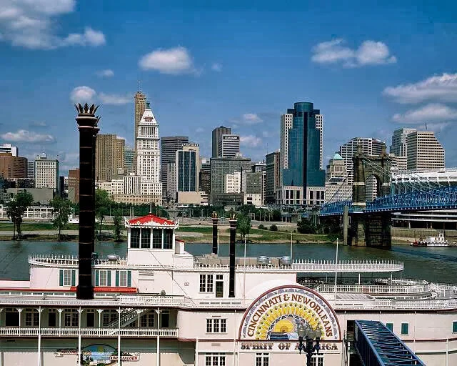 The Spirit of America at The Covington Landing as seen in this mid 90's photograph of Cincinnati that can be purchased through Ikea.