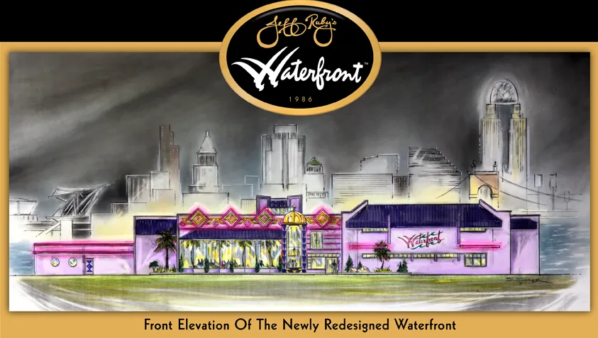 The Waterfront had been a staple of the area's riverfront attractions much like how Jeff Ruby is a staple in Cincinnati dining and pop culture. Originally hailing from New Jersey, Ruby grew up working for his parents in restaurants. After college, he found himself in Cincinnati and was best known for creating the "Den of Little Foxes," the premiere club in Cincy's 1970's nightlife scene. In 1981 he opened The Precinct and his reputation as a restauranteur caught on. The Waterfront was his second venture, opening in 1986. In the late 80's, it was well known for being the hangout for numerous Bengals players when Boomer Esiason was guiding them to their 1989 Super Bowl berth.