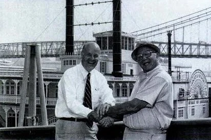 Gary Wachs, left, and Ben Bernstein, right, at the opening of The Covington Landing in 1990.