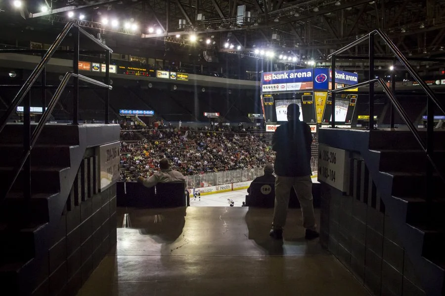 The cup's visit to US Bank Arena is the Cyclone's promotion of the night, returning for the second year in a row. It joins a schedule of $1 beer nights, military appreciation events, and cheap tickets that make minor league hockey appealing to the local fan base and vastly different from what you might find going on at an NHL game. The arena's upper deck is covered by tarps in an attempt to keep the announced 3,485 people in attendance closer and engaged. At intermission, inflatable characters keep young children entertained while split-the-pot tickets are sold. It's an environment that has made the organization successful since its return in 2006.