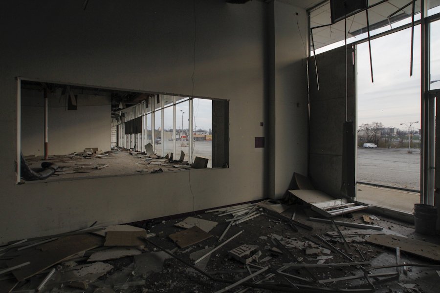 It's a windy, cold December day in the Cincinnati neighborhood of Roselawn. The sun is setting on Seymour Plaza both literally and metaphorically as myself and members of the Port of Greater Cincinnati Development Authority begin touring the shuttered shopping center. The Port Authority has purchased the property and begun redeveloping it along with a few surrounding buildings. It's part of a larger plan to bring new businesses and development into once blighted properties. These photographs, made in conjunction with the Port Authority, are to serve as documentation of what was at the site prior to its intended redevelopment.
