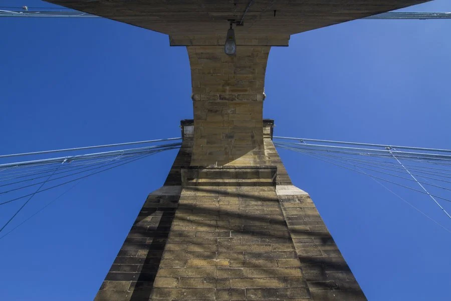 The suspension bridge is a visual and auditory icon on both the Ohio and Kentucky sides - normally the ominous hum of cars flying through the bright blue supports and over the metal deck creates a buzzing sound echoing across state borders and into the urban cores.