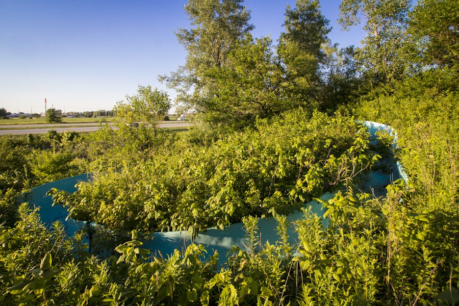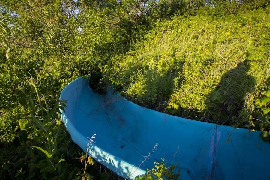 The slides are incredibly overgrown, but we found a cement path that lead to the top. It's pure speculation, but I'd wager that these were probably just once an attraction for the nearby campground/fishing lake rather than a full blown waterpark.