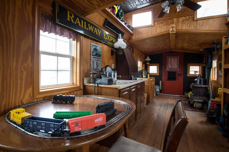 Lionel trains inside the caboose.