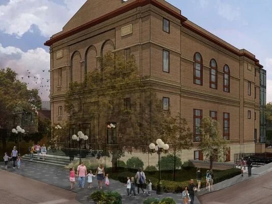 Rendering showing a revitalized building.