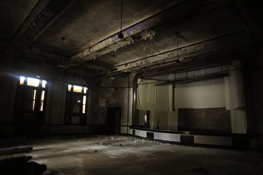Once inside, after your eyes adjust to the darkness, it's clear just how grand this building is. Built in 1911, the building served as a Masonic Lodge for 77 years. For nearly a quarter of a century, the building deteriorated until it was stabilized and listed as a local landmark in 2011. When these photographs were made in 2014, local community organization Price Hill Will had signed an agreement to purchase the building. As of this writing, Price Hill Will currently owns the building and is following a plan for its revitalization.