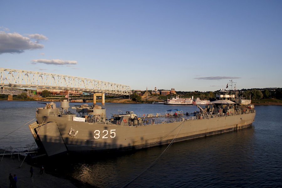 I was sitting at my desk. On the main computer monitor: a combination of Lightroom, Bridge and Photoshop displaying photos in various stages of editing. On the secondary monitor: a browser window, providing real time GPS tracking of the USS LST-325 as it steamed towards Cincinnati. All around me half of my possessions were in organized piles on the floor, the others tucked away in boxes.